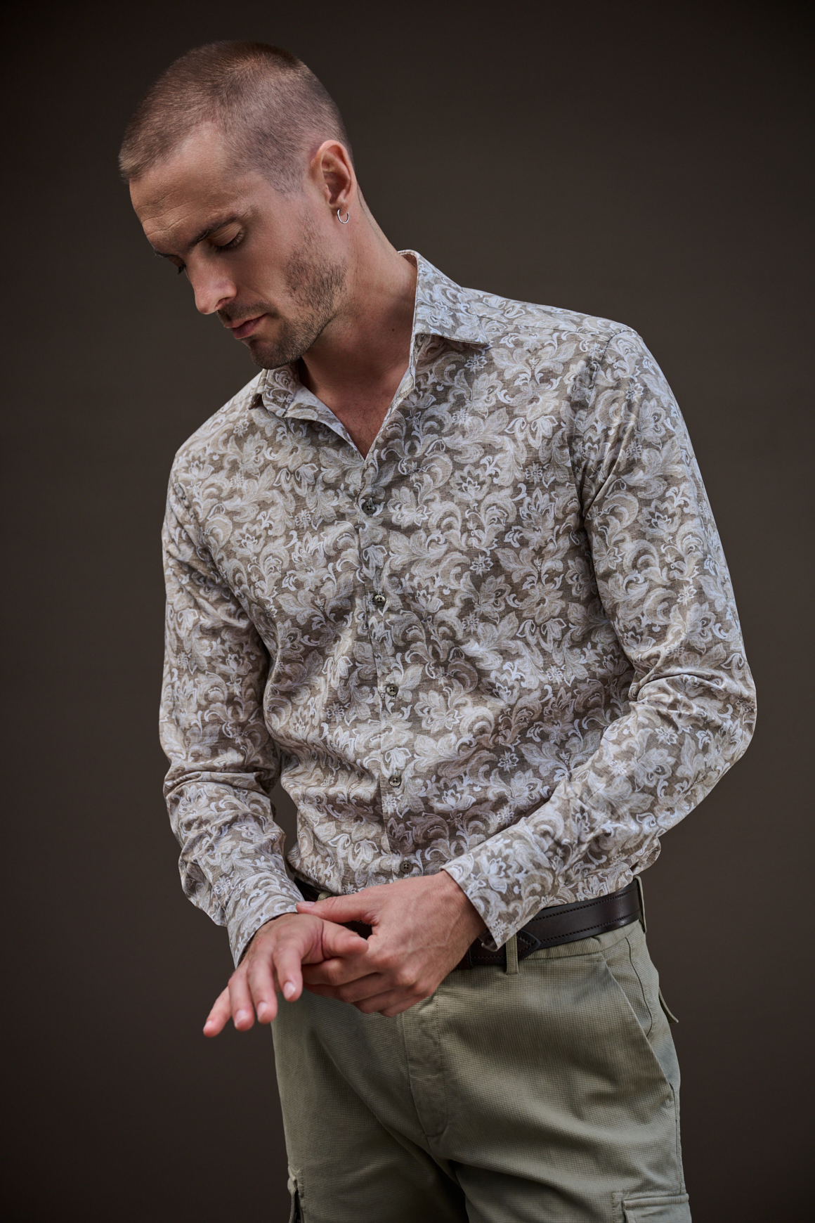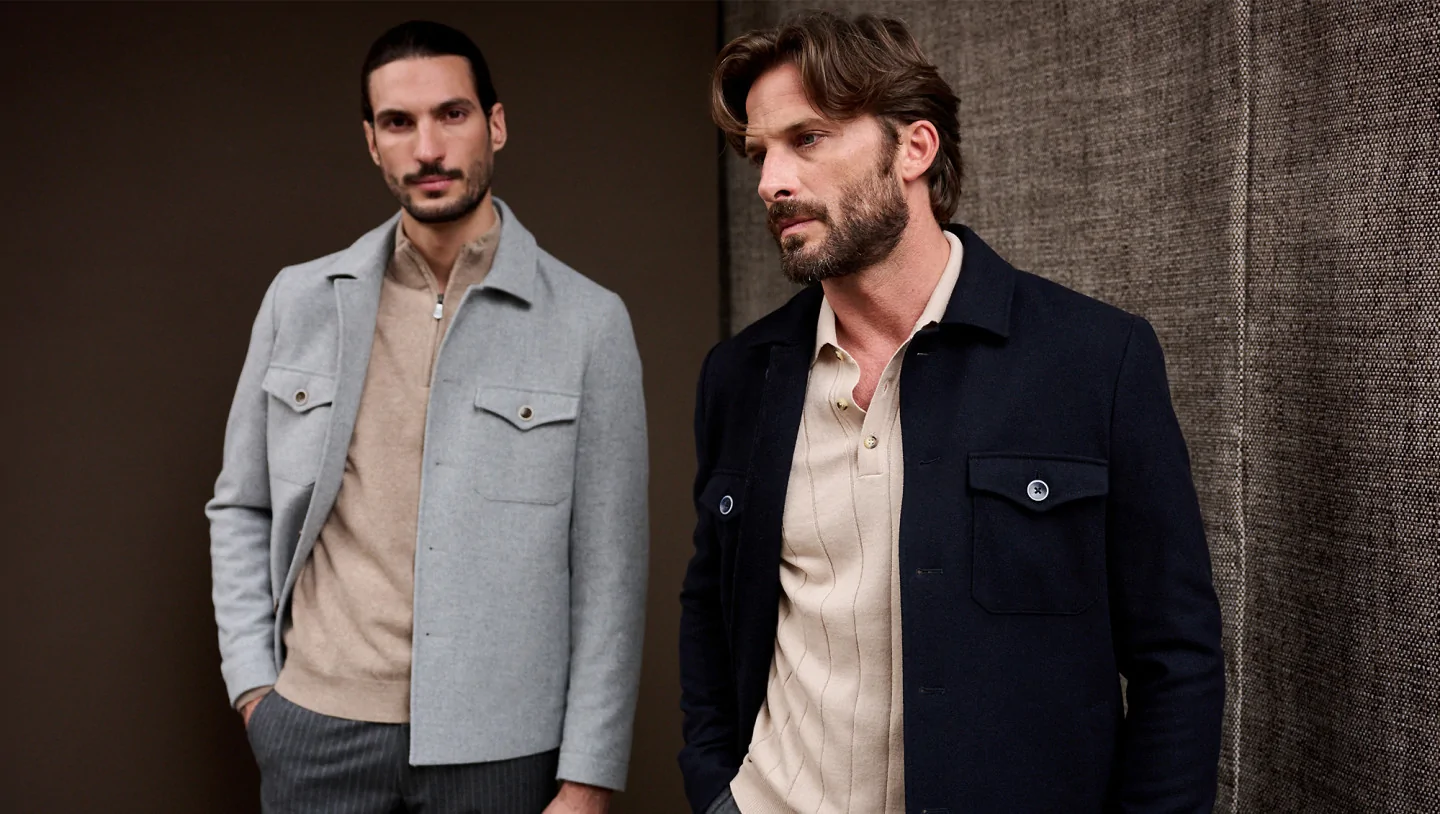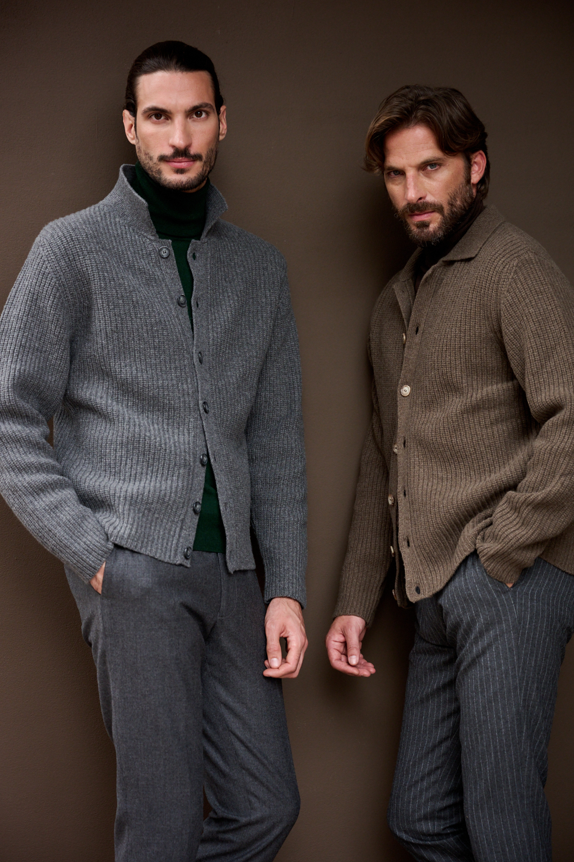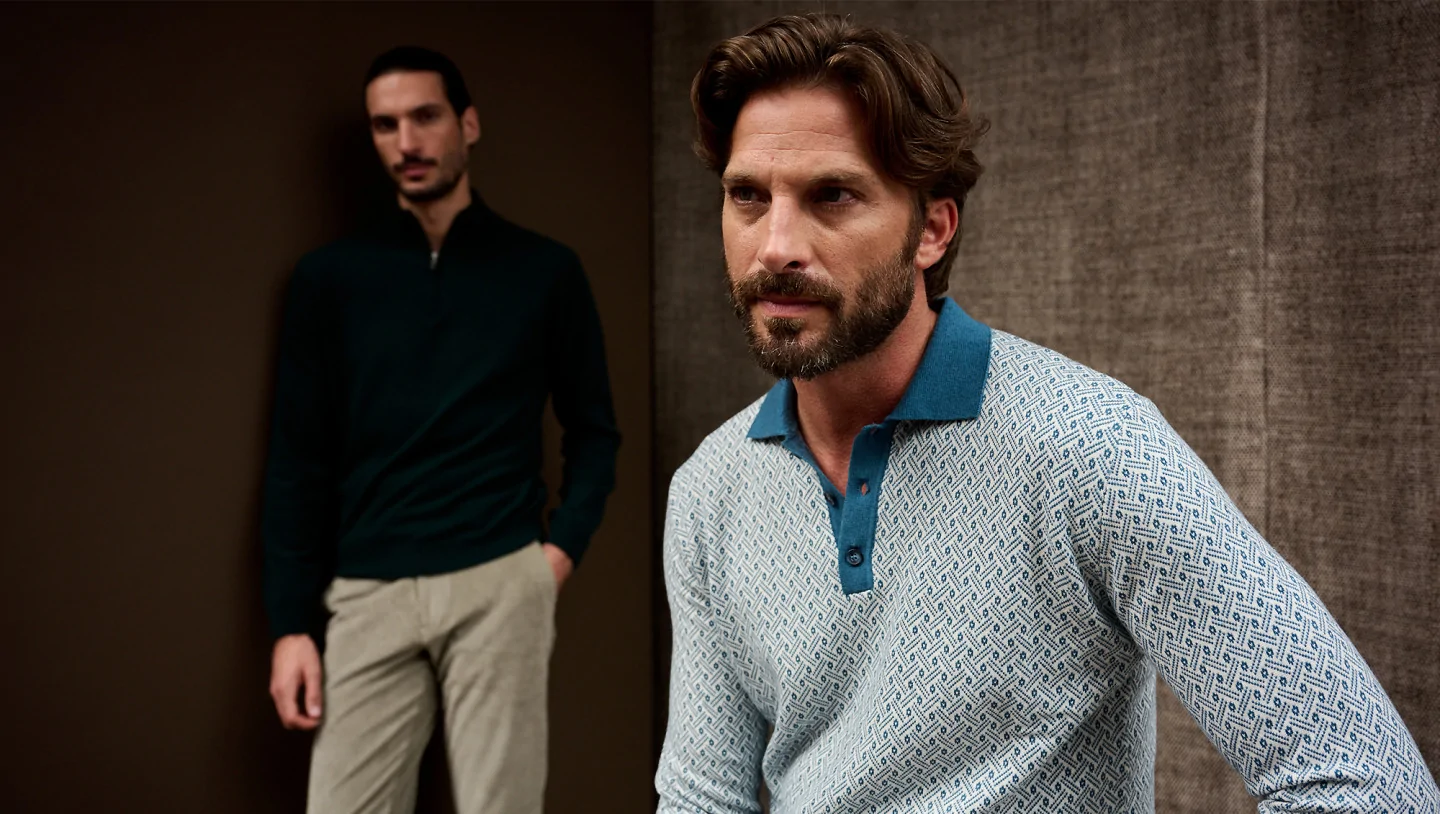 La collection Automne-Hiver 25 est un pont entre les couleurs de sous-bois, de nature et d’hivernage, mêlant avec mélancolie les bruns et les verts à celles de la vie citadine où les Bleus et les Gris, et l’étendue de leurs camaïeux ont la part belle pour souligner des silhouettes masculines légèrement affirmées.