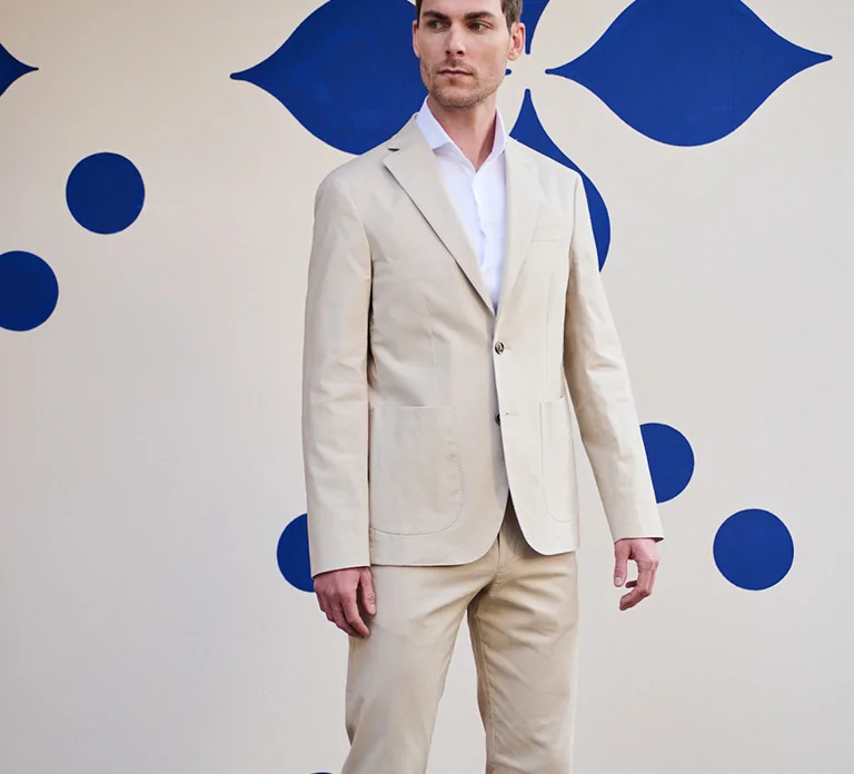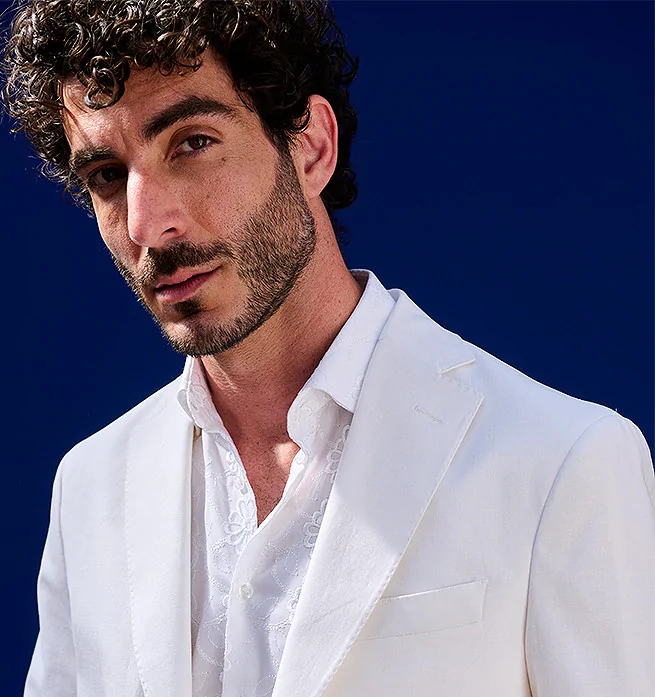 Version NIZZA LINO en blanc ou beige, que vous soyez le marié, le témoin, l’invité ou un prétendant. Version MONACO pour une silhouette originale et distinctive au milieu de tous les costumes.