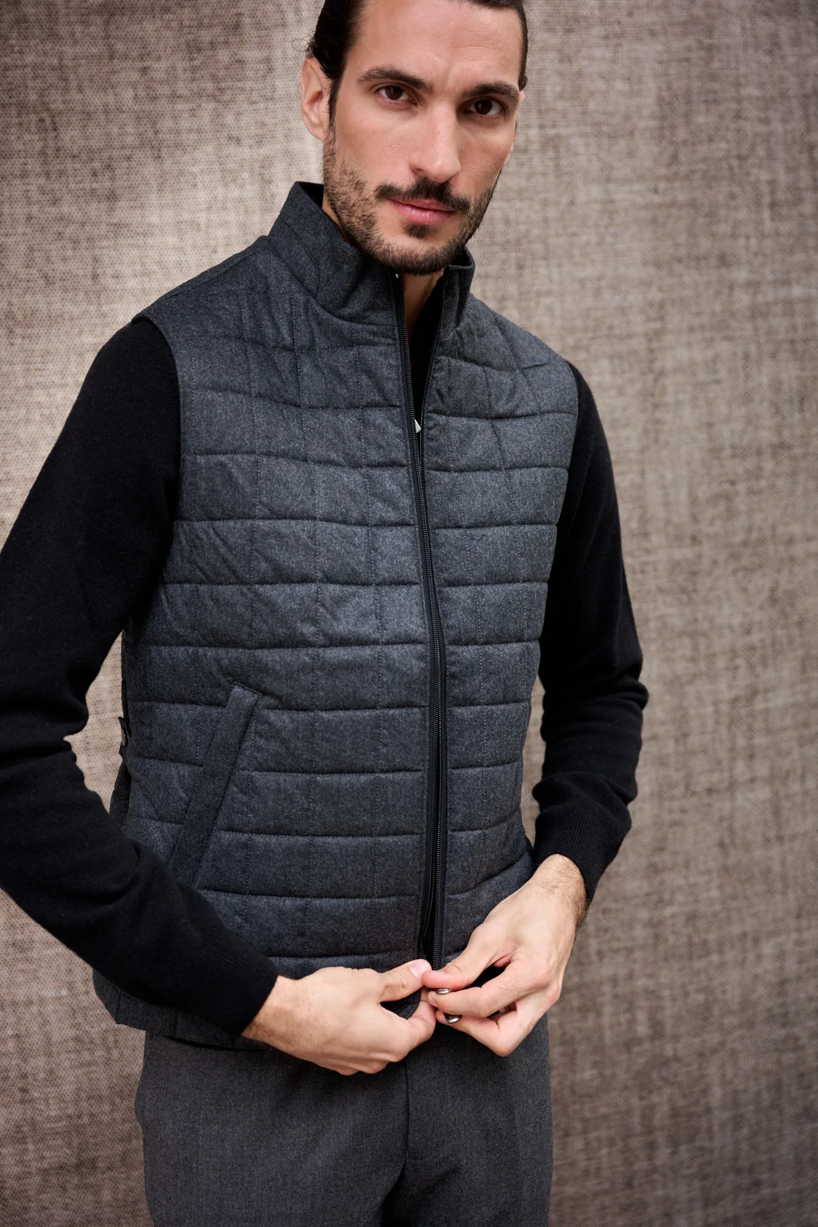 Le Gilet matelassé en flanelle de laine Super 120. Finesse et chaleur garantis. Devenus en quelques années un parfait iconique de Nodus.