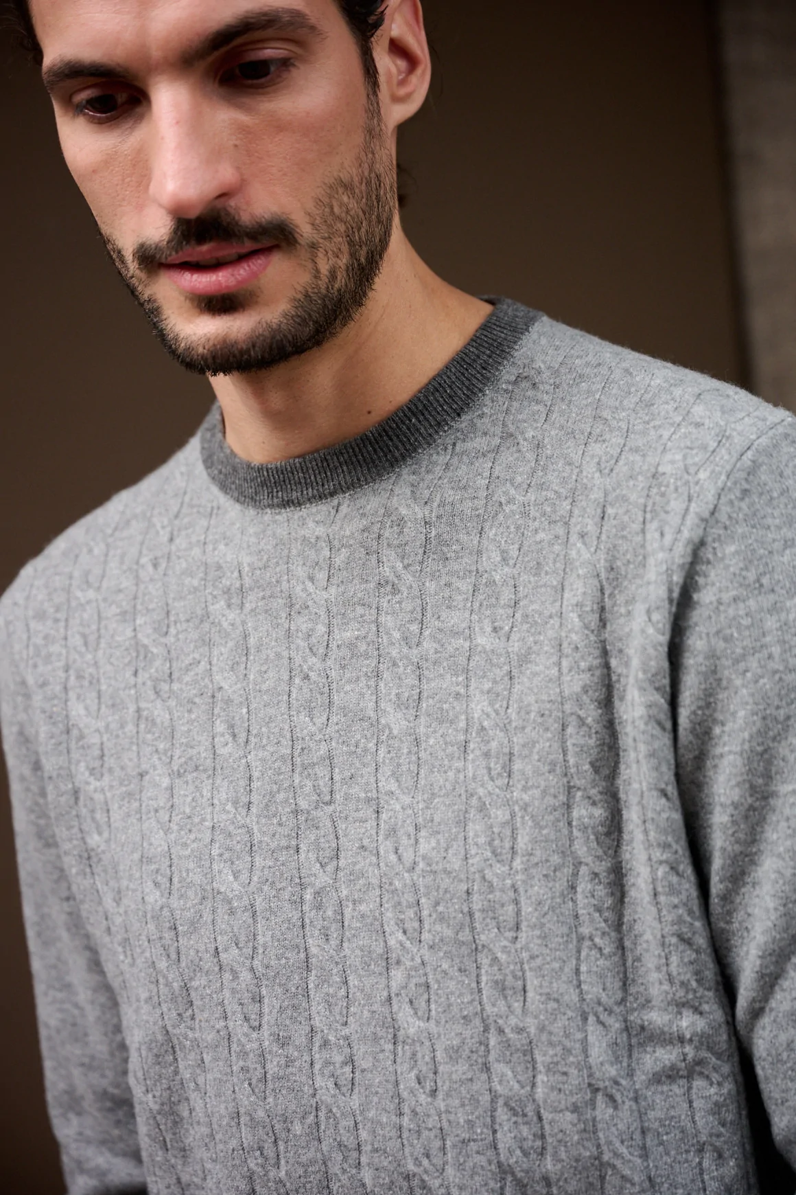 Retour d'un grand classique de la maille. Le pull à torsades. Montage en bi-couleur pour une silhouette décontractée.