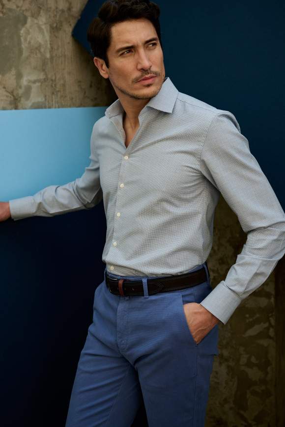Chemise Casual en Coton. Flanelle de coton bleu grisé. Pour porter avec une cravate en laine ou pour un look 100% casual sur un bon chino d'hiver.