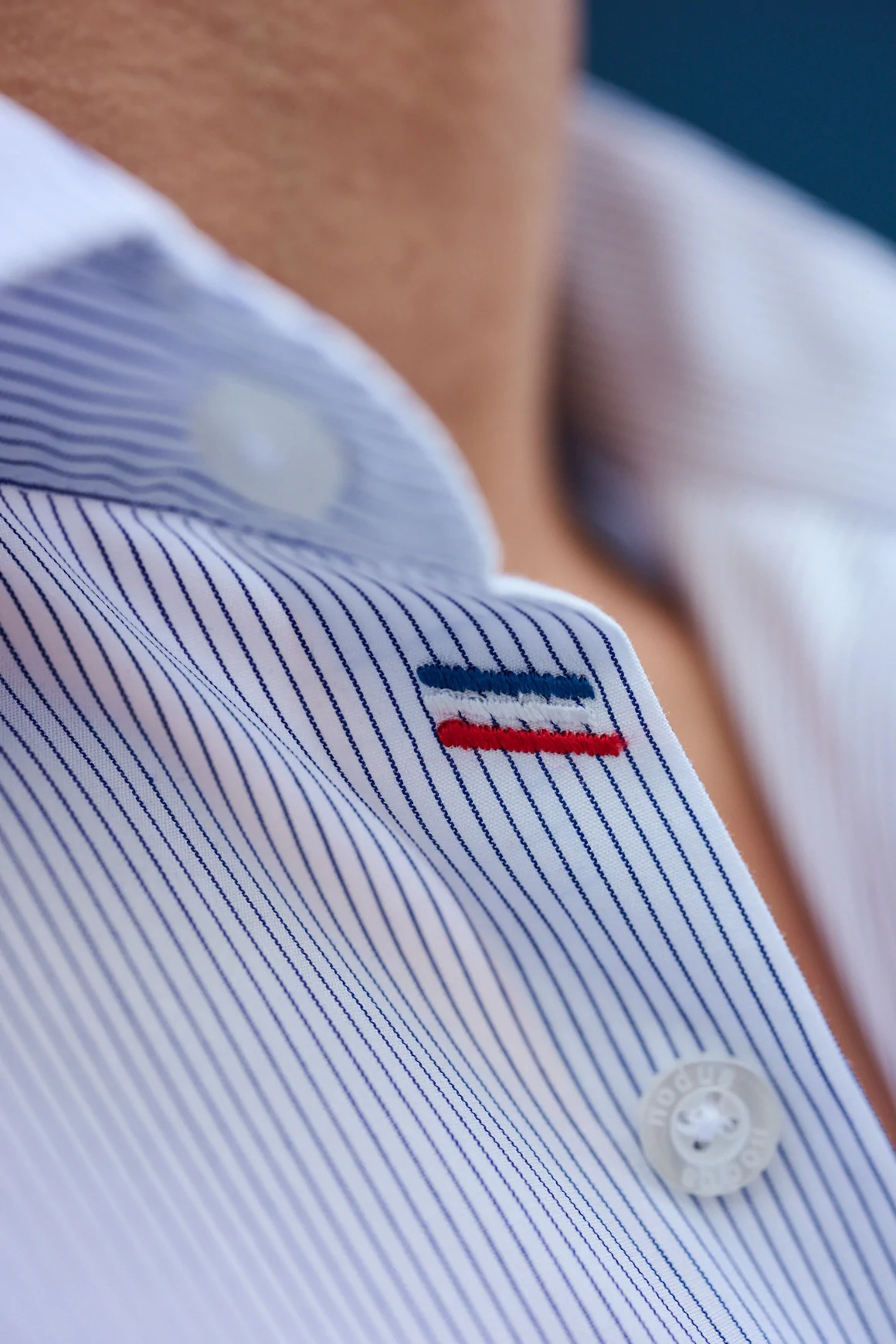 Popeline double retors à fine rayures orné de notre drapeau BBR.