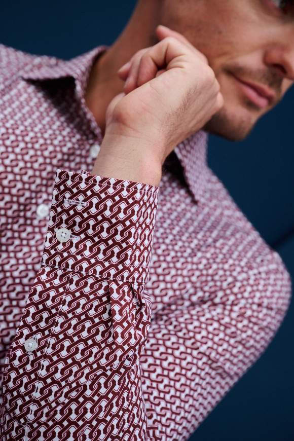 Motif Chaine, iconique dans la mode, très années 60, que nous revisitons en coloris rouge-bordeaux. Très chic.