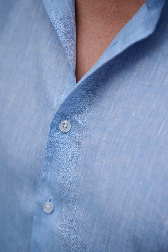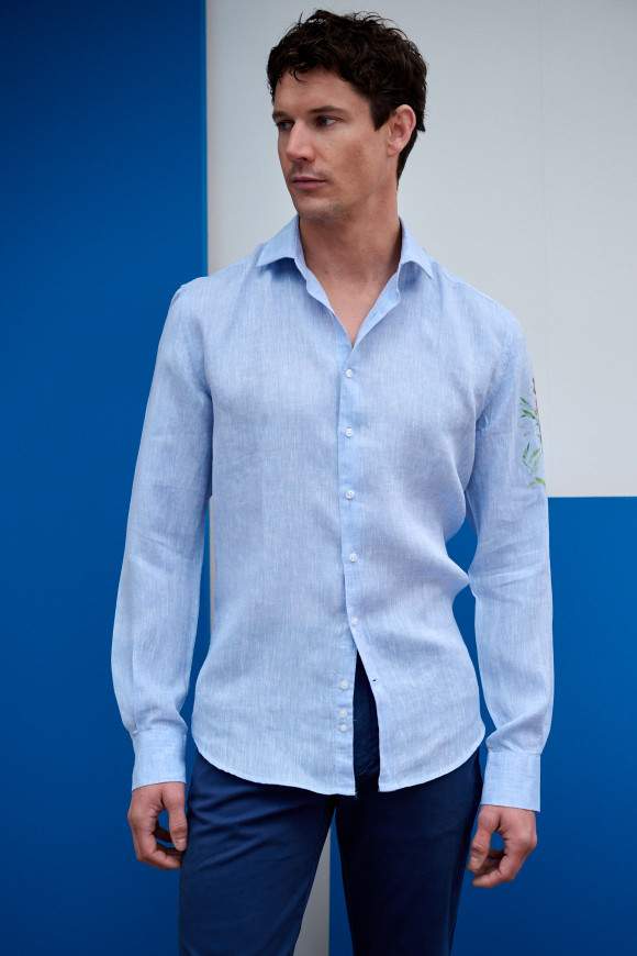 Réinterprétation de notre iconique Perroquet. Imprimé sur un lin bleu pour la saison. Légèreté et fraîcheur. Prêts à prendre votre envol ?