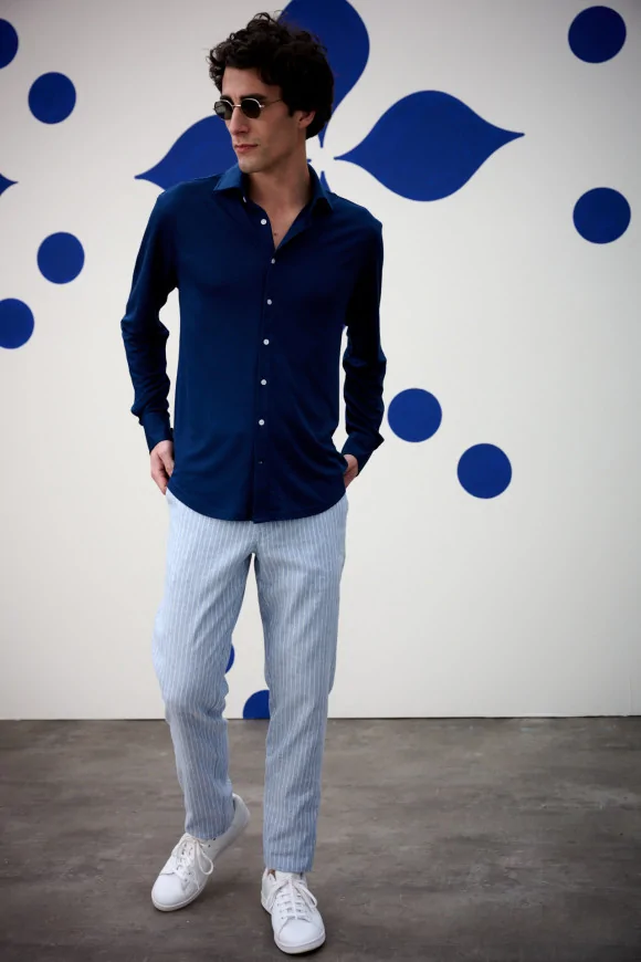 On dirait le Sud. Et toujours en Eté. Rien à dire que de se laisser séduire par le grain du lin et la tenue du coton. Mix parfait.