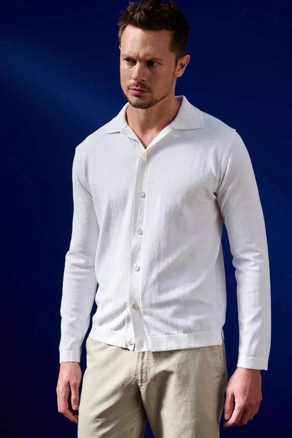 Un peu chemise, un peu polo. Mais beaucoup de classe dans cette pièce maîtresse de la saison en crêpe de coton. Tout en légèreté et fluidité !