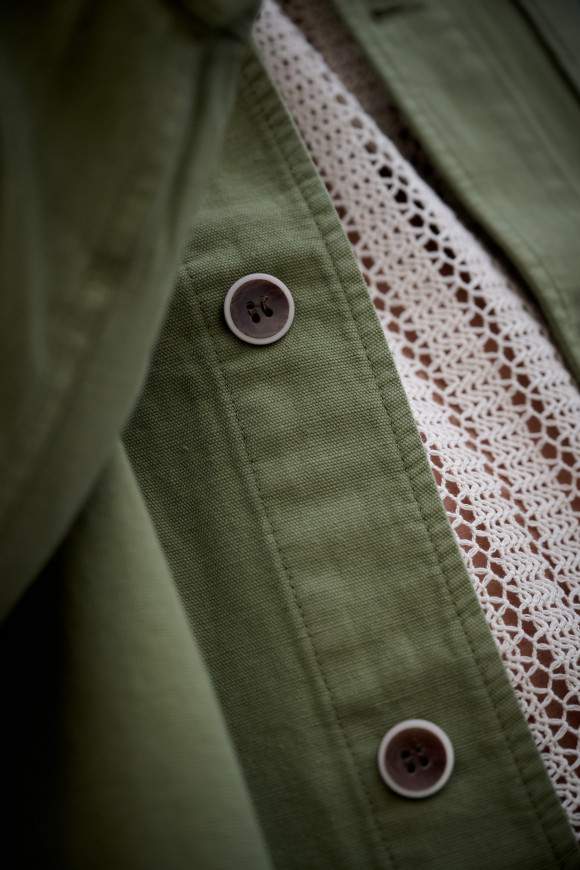 Réédition de la veste Brad en Coton avec une armure "perle". Jetez un coup d'œil sur les magnifiques boutons.